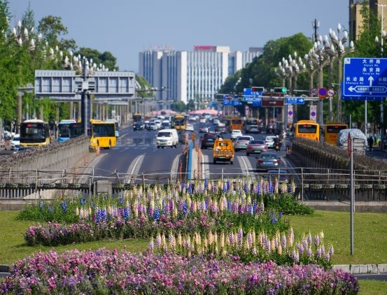 2026年3月底到4月以来,双流区公园城市绿化服务中心对双流广场、南昌路、成双大道、双楠大道等主要城市道路节点的时令花卉进行了更新,兼顾色彩搭配和季节因素,栽植了毛地黄、飞燕草、矮牵牛、玛格丽特、虞美人、美女樱等时令花卉,更新了时令花卉面积12000平方米,栽植佩兰、锤筒花、喷雪花、花叶锦带、绣线菊等22种多年生花卉,延长观赏期,降低养护成本,更新多年生花卉植物面积6000平方米,有效地提升了城市的景观水平和市民的幸福指数,让市民走出家门就能感受城市的繁花似锦。