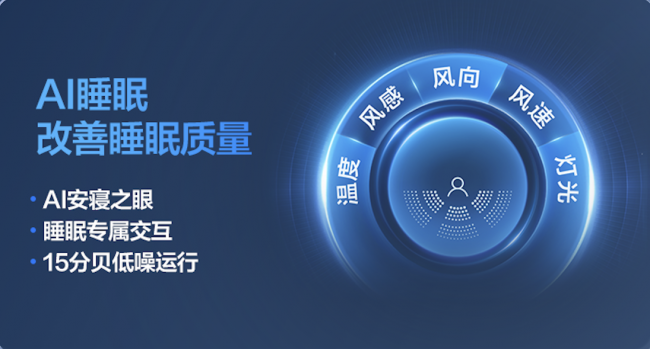 这一能力使空调首次实现了对睡眠阶段的实时感知:当用户晚上准备睡觉时,开启"AI睡眠"模式,空调灯光、风感、风速会自动调到最舒服的助眠状态。