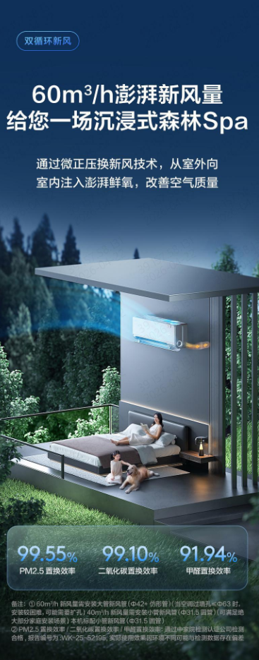 60m³/h澎湃新风+内循环净化,守护整夜呼吸健康