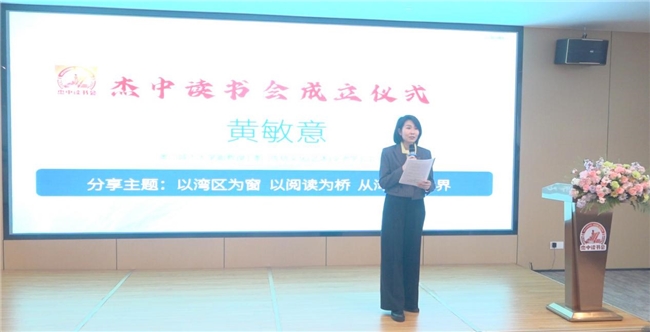 澳门城市大学副教授、澳门传统文化(艺术)交流学会会长黄敏意女士以《以湾区为窗 以阅读为桥——从湾区看世界》为题发表演讲。她指出,粤港澳大湾区不仅是经济高地,更应是文化融合的窗口。阅读是连接湾区与世界的桥梁,通过经典共读,可以让中华文化在年轻一代中生根发芽,让湾区故事走向世界。