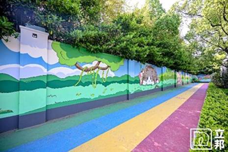 作为全程陪伴的爱心伙伴,立邦于活动当天在路线第一卡点进行全面保障,为15公里欢乐路线与50公里经典路线的所有参与者提供饮用水、能量食品等基础物资补给与沿途服务支持。暴走路线还途经云朵公园,园区内由「为爱上色」ART+合作艺术家橡树先生创作的180米《星之旅途》主题墙绘,形成自然温暖的城市艺术景观。作品以儿童视角描绘治愈向善的故事内核,与本次活动守护儿童成长的公益理念自然呼应。现场同步设置轻松的互动打卡环节,让参与者在徒步途中感受公益氛围,传递温暖善意。