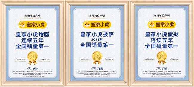 在对于烤肠类型产品的研究中,CIC灼识对于皇家小虎烤肠的市场地位研究结论为“皇家小虎烤肠连续五年全国销量第一”,其注释为“基于CIC灼识对中国大陆速冻食品行业的研究,于2026年1月完成调研。以2021年1月1日至2025年12月31日烤肠产品在全国全渠道年销售量(根数)计。该研究针对以肉为主料,加辅料和香料腌制灌于肠衣的肉制品,需冷冻保存销售。”